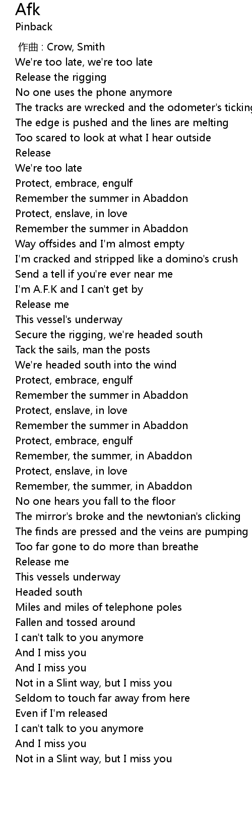 | [01:29.60] | I'm A.F.K and I can't get by |