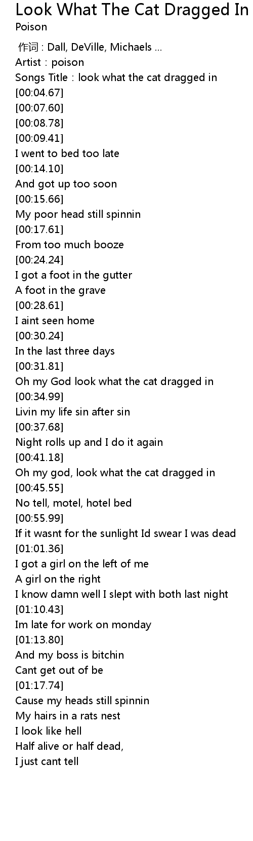 | [00:01.97] | Songs Title: look what the cat dragged in |