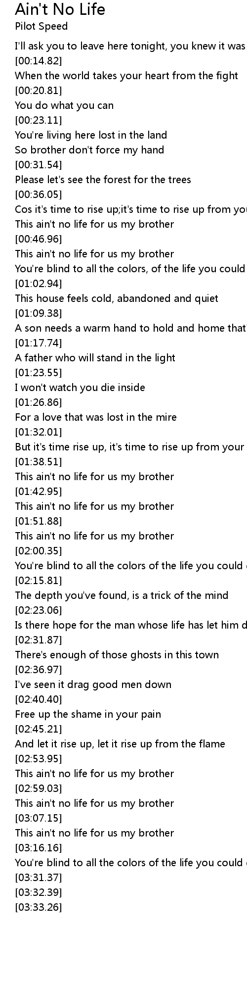 This ain't no life for us my brother |