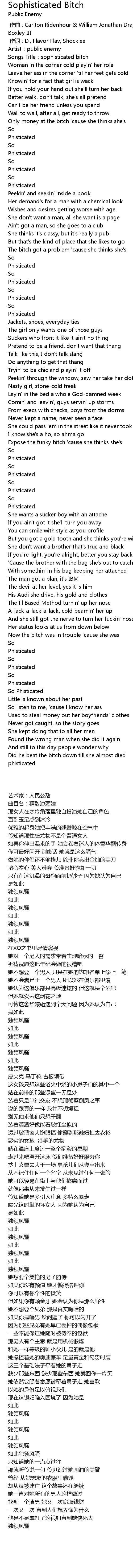 | [00:00.344] | 作词 : D., Flavor Flav, Shocklee |