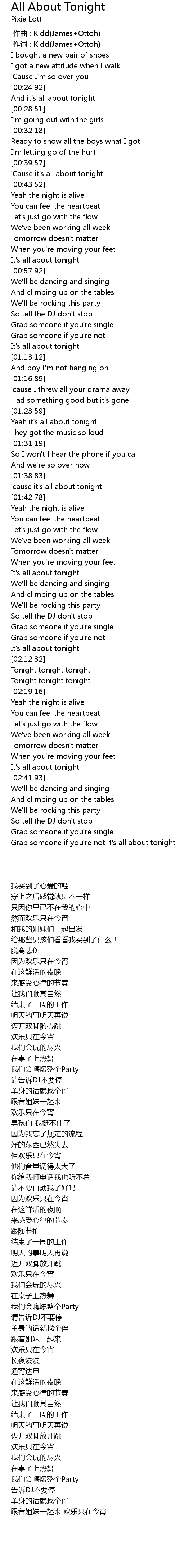 | [01:25.04] | Yeah it' s all about tonight |