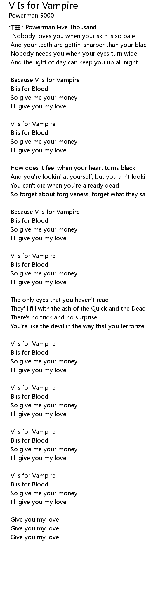 | Song | V Is for Vampire |