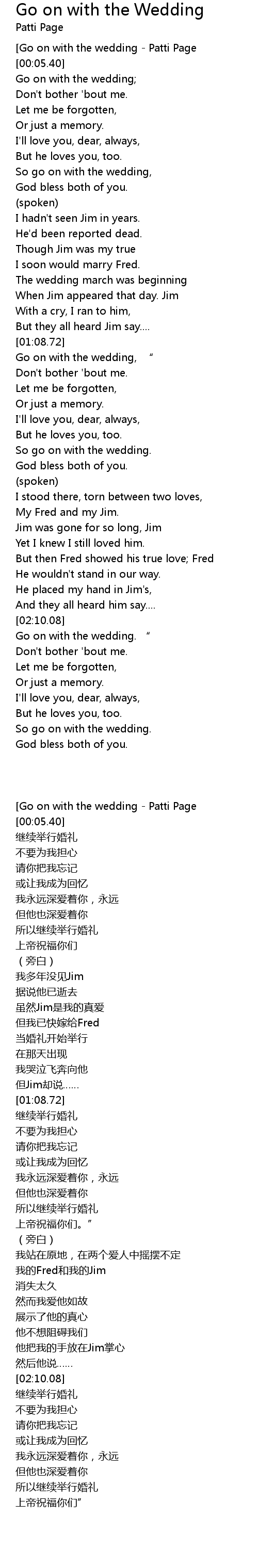 | [00:02.30][Go on with the wedding - Patti Page] | |