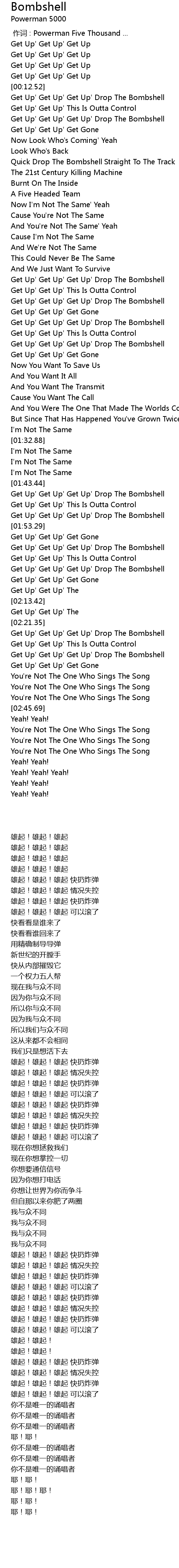 | [01:57.22] | Get Up' Get Up' Get Up' Drop The Bombshell |