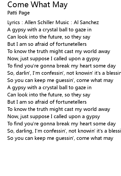 | Song | Come What May |
