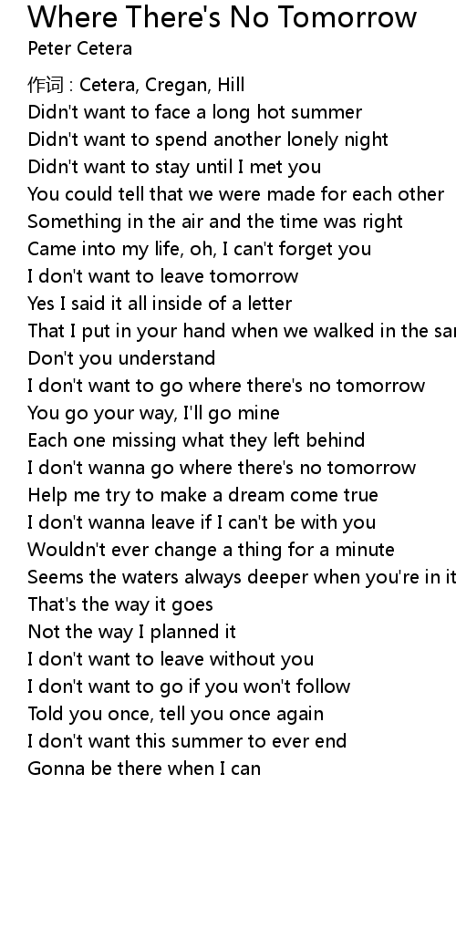 | I don' t want to go where there' s no tomorrow | |