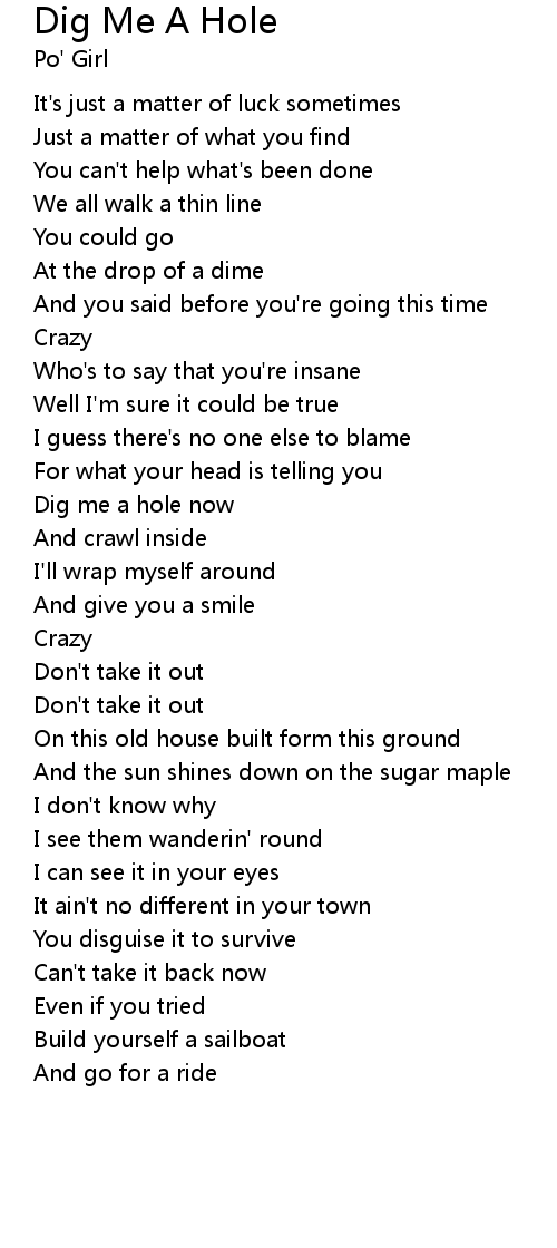 Dig me a hole now |