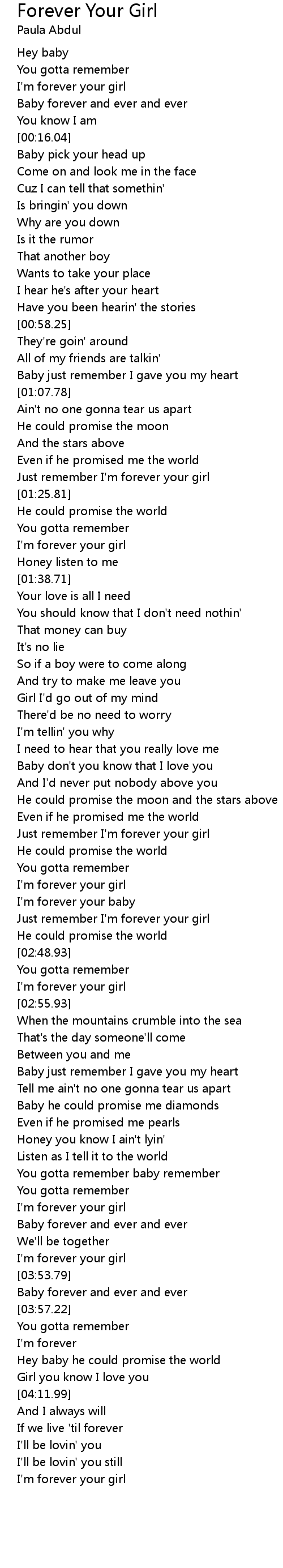 Just remember I'm forever your girl |