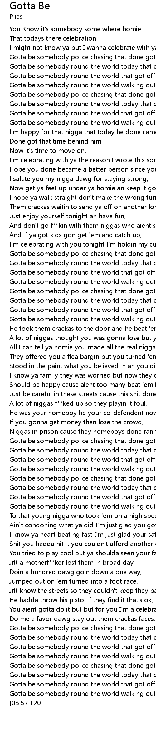 Gotta be somebody round the world that got off probation today, |