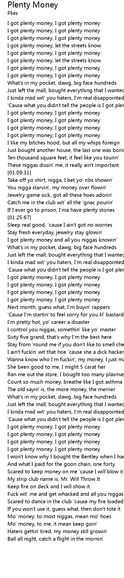 I got plenty money, I got plenty money |