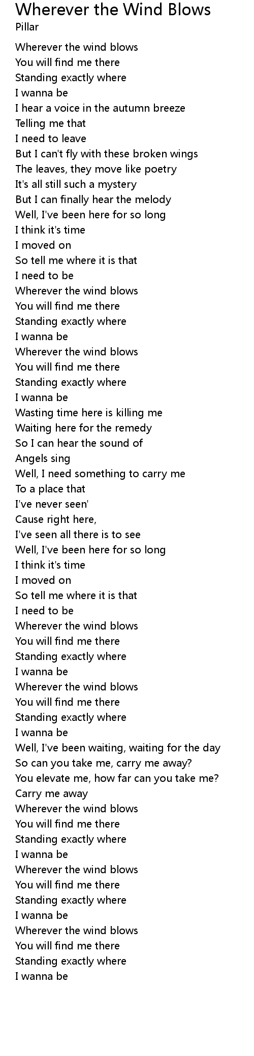 Wherever the wind blows |