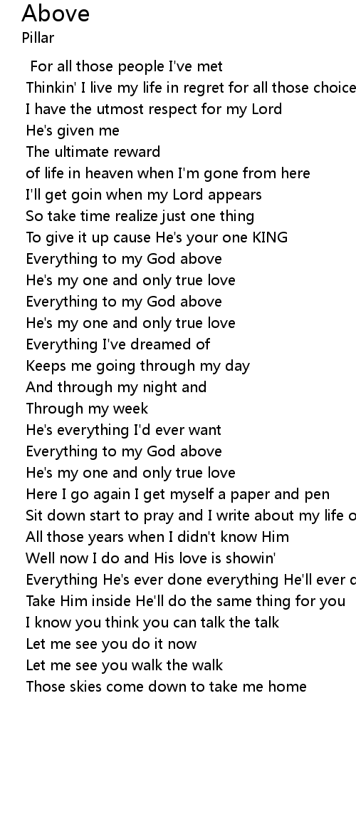 | Everything to my God above | |