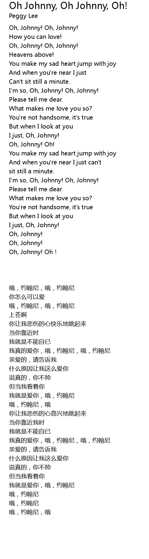 | [00:26.43] | I' m so, Oh, Johnny! Oh, Johnny! |
