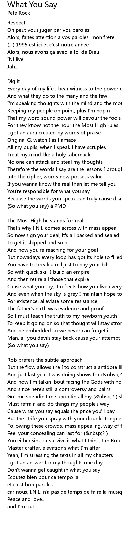 | Cause what you say equals the price you' ll pay | |