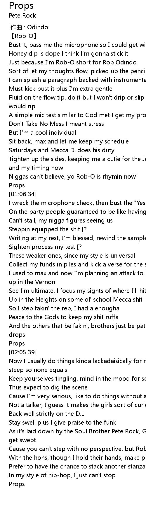 | [01:00.80] | Niggas can't believe, yo Rob-O is rhymin now |