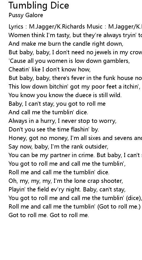 | Roll me and call me the tumblin' Got to roll me. dice. | |
