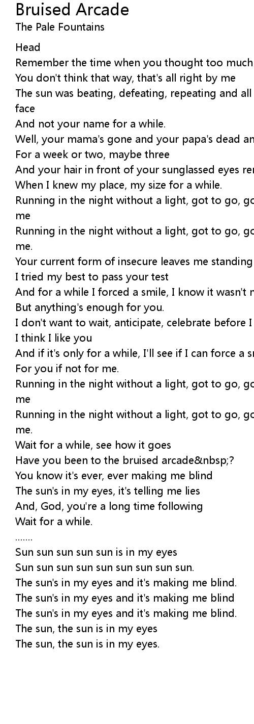 The sun was beating, defeating, repeating and all the time I wanted to know your face |