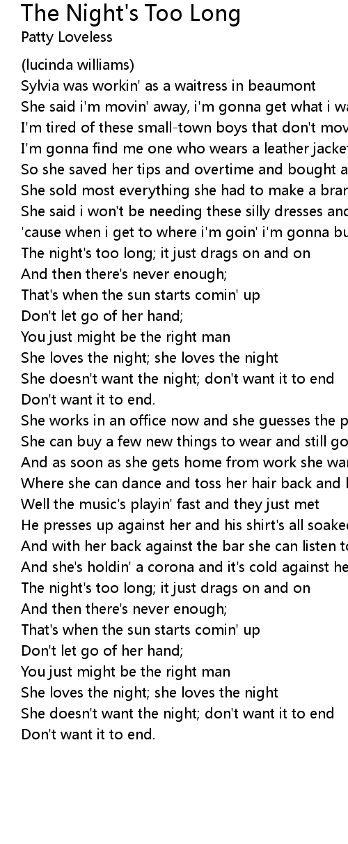 The night's too long; it just drags on and on |