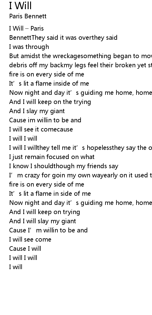 | I will I willthey tell me it’s hopelessthey say the odds are not goodbut | |