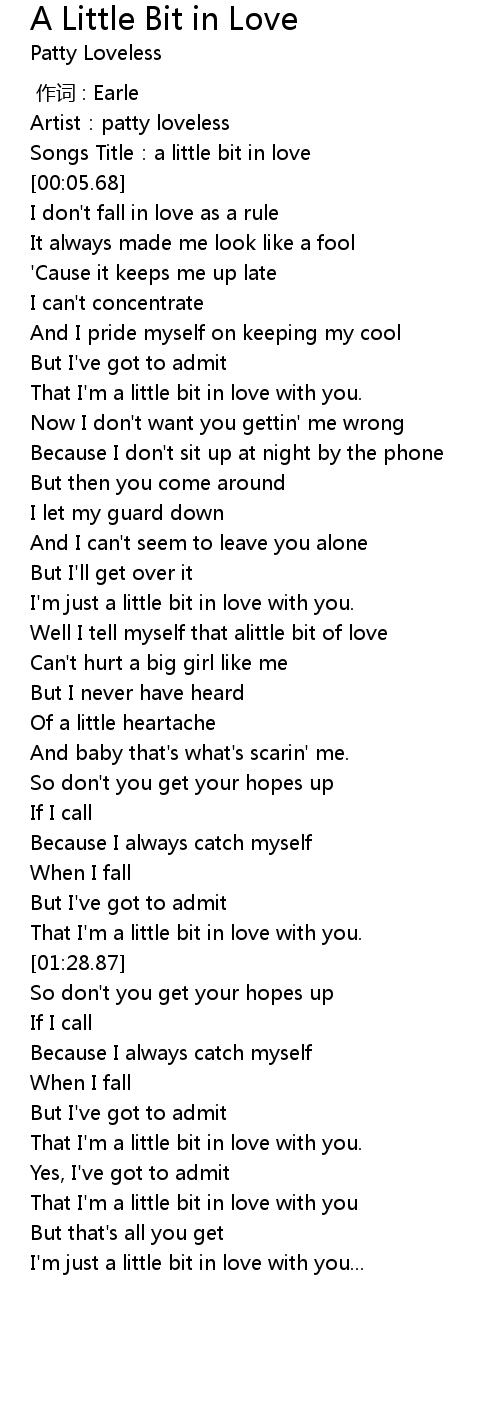 | [00:02.43] | Songs Title: a little bit in love |