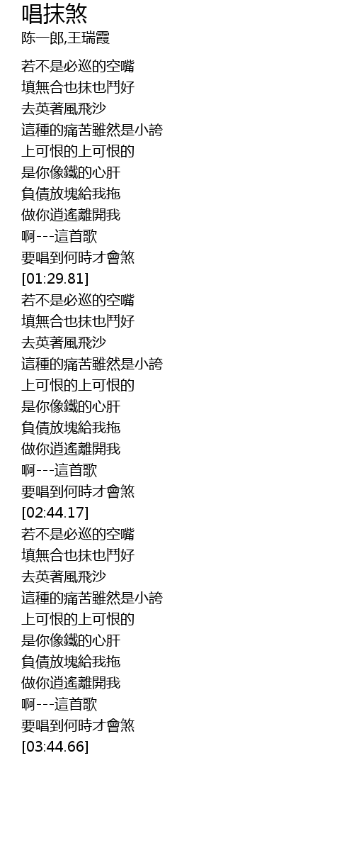 | [01:52.16] | 填無合也抹也鬥好 |
