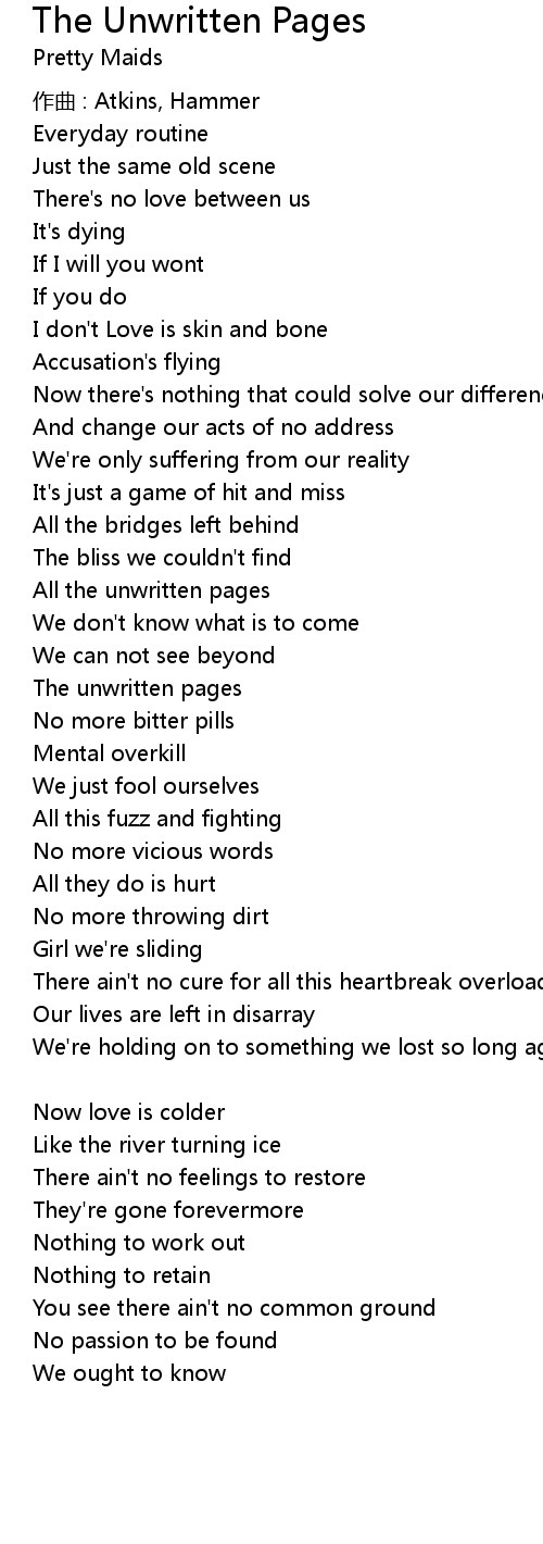| Song | The Unwritten Pages |