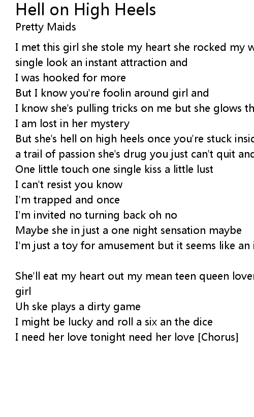 But she's hell on high heels once you're stuck inside her web she leaves you in a trail of passion she's drug you just can't quit and your mind is in a haze |