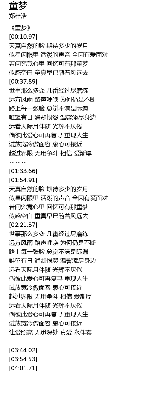 | [00:26.38] | 若问究竟心里 回忆可有那童梦 |