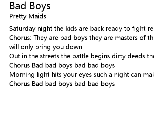 | Chorus: They are bad boys they are masters of the town you are they toy and they will only bring you down | |