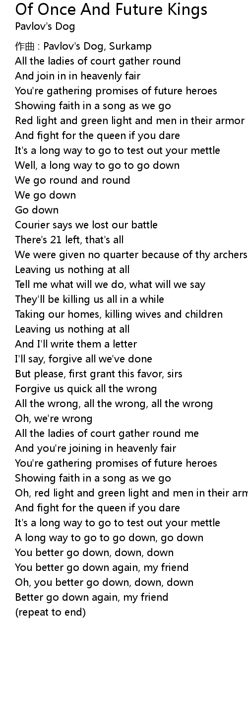 | Song | Of Once And Future Kings |