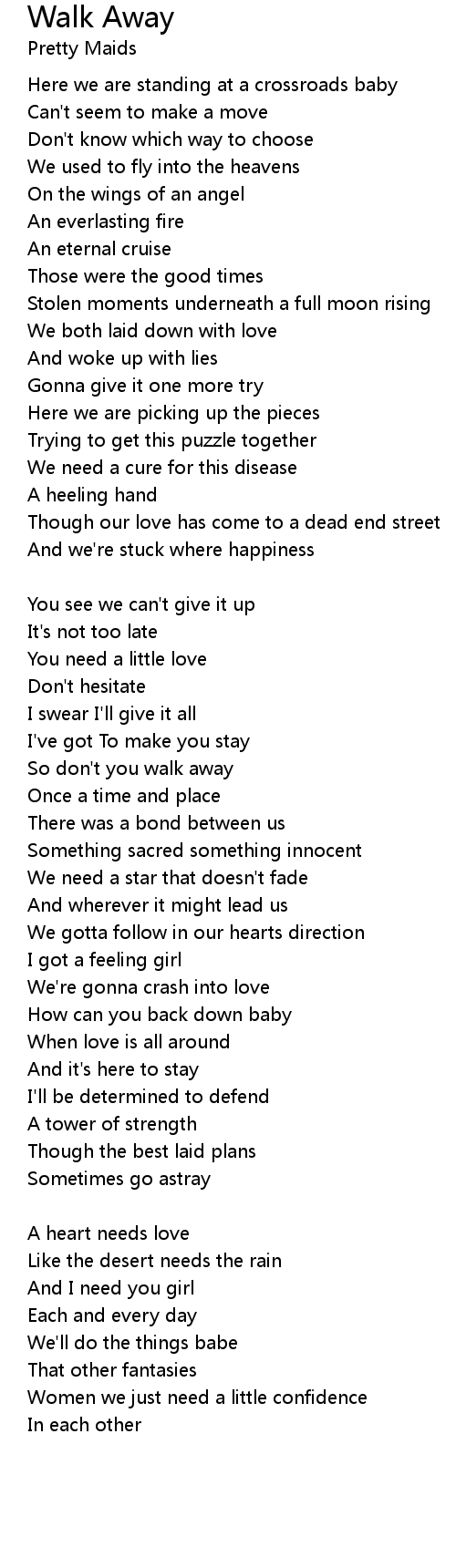 So don't you walk away |