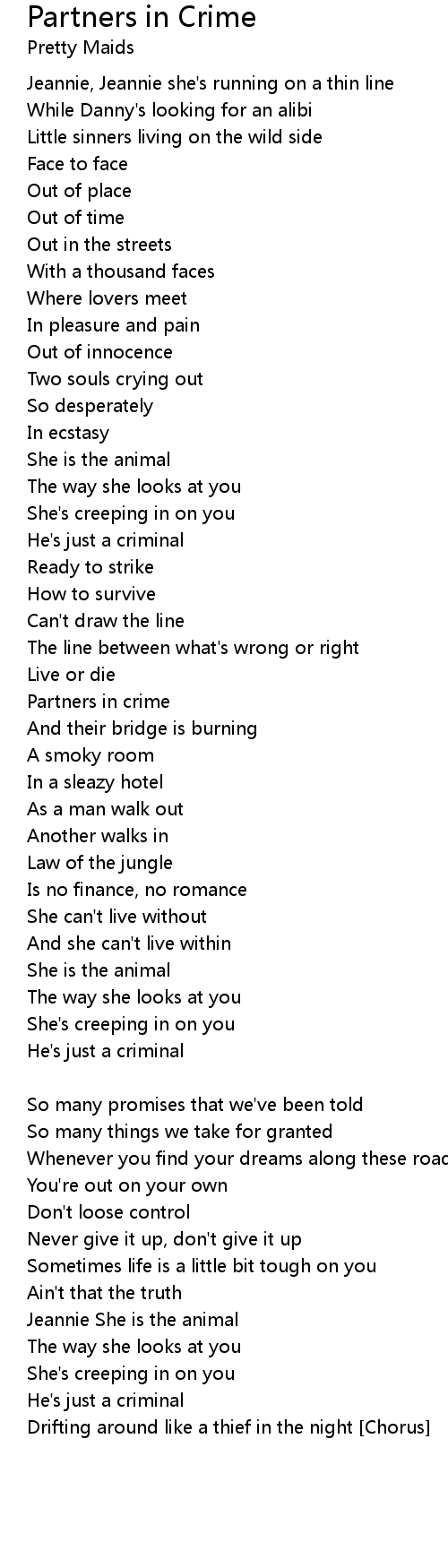 Jeannie, Jeannie she's running on a thin line |