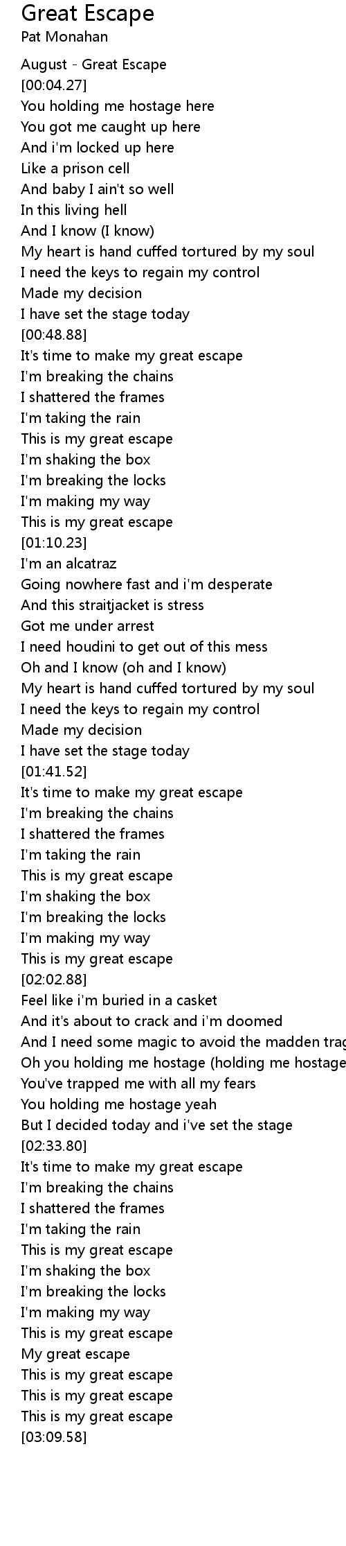 It's time to make my great escape |