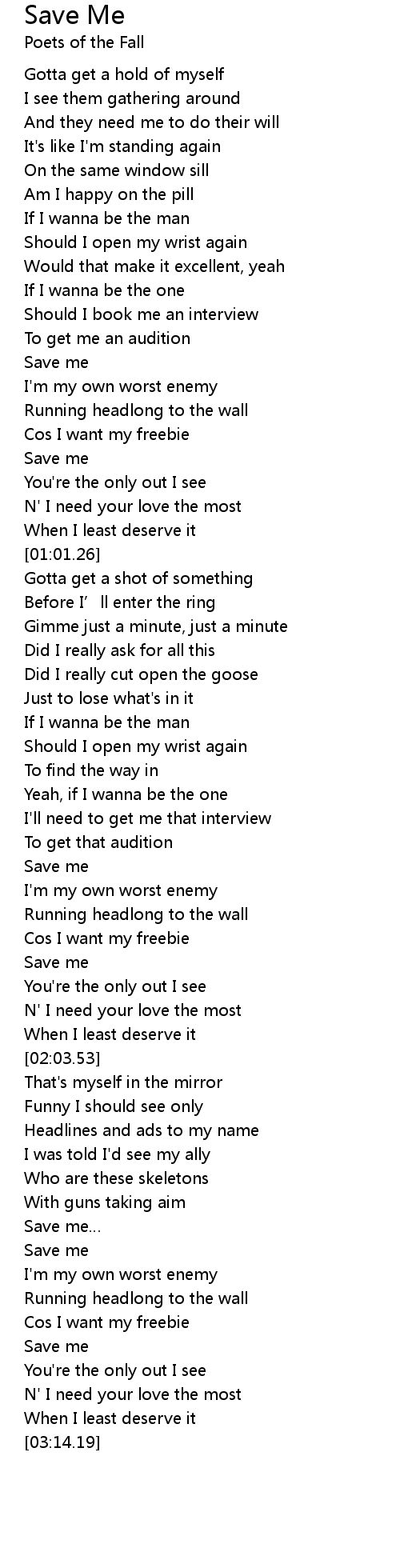 | [01:52.75] | Save me |