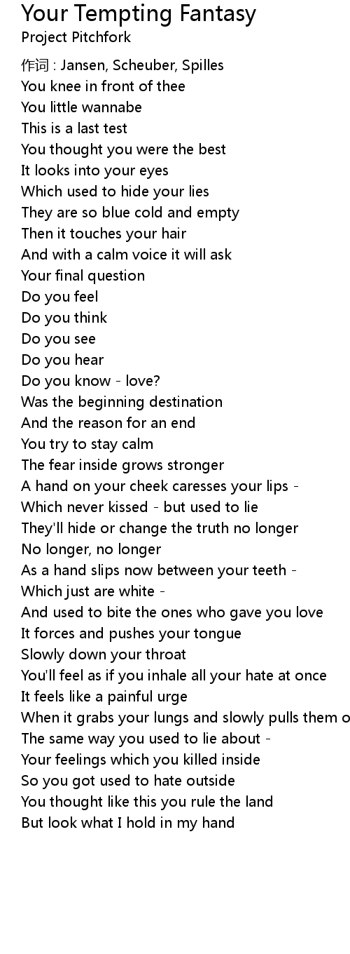 | Song | Your Tempting Fantasy |