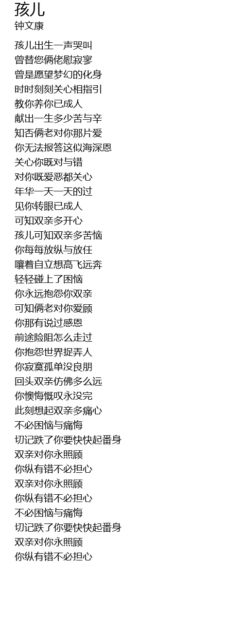 | hái ér kě zhī shuāng qīn duō kǔ nǎo | |