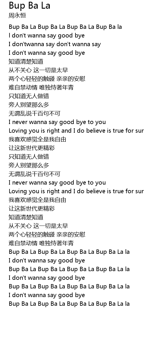| [00:06.98] | Bup Ba La Bup Ba La Bup Ba La Bup Ba la |