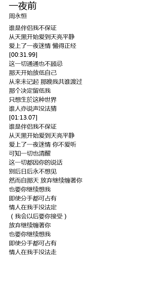 | [01:54.33] | 爱上了一夜迷情 你不爱听 |