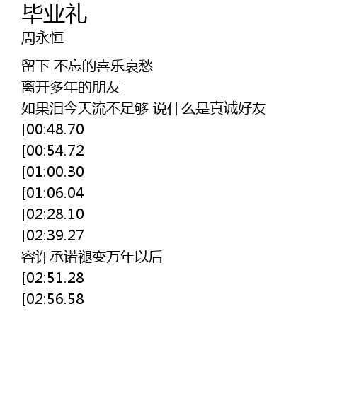 | [02:05.08][00:48.70] | 纪念册让你写上几句话 |