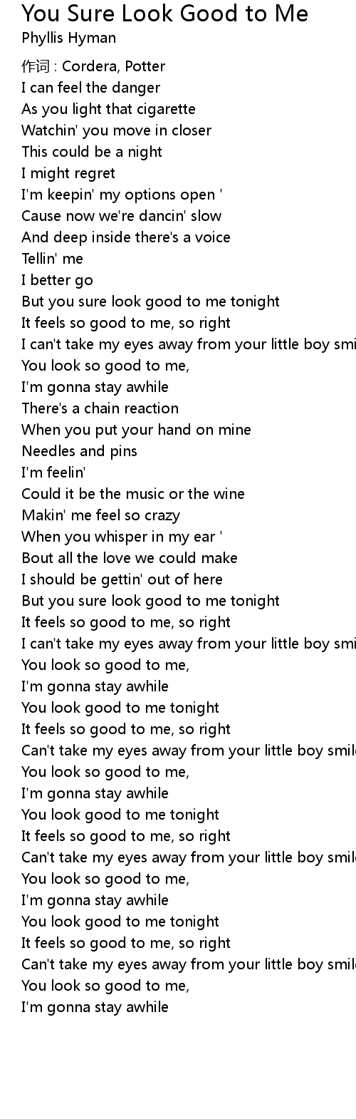 | You look so good to me, | |