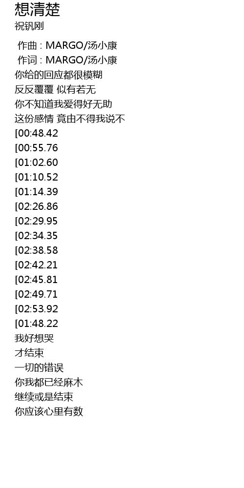 | [03:44.49][02:42.21][01:32.61] | 想清楚 |