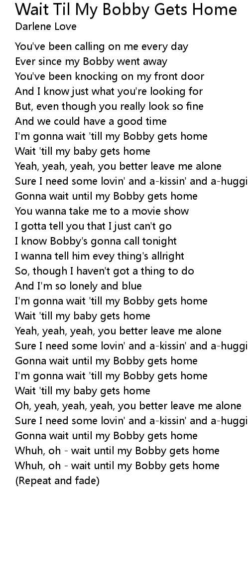 Gonna wait until my Bobby gets home |