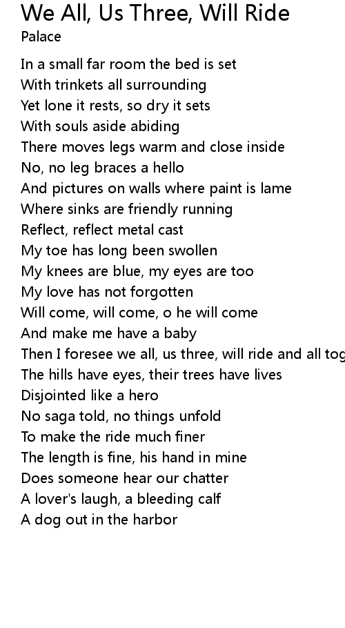Then I foresee we all, us three, will ride and all together |