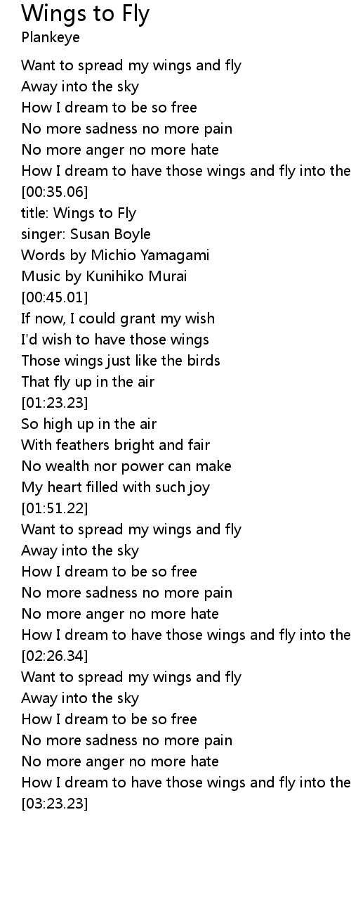 | [00:37.82] | title: Wings to Fly |