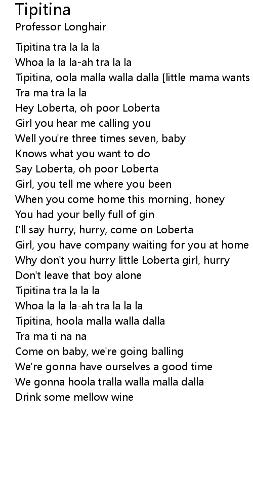 Tipitina, hoola malla walla dalla |