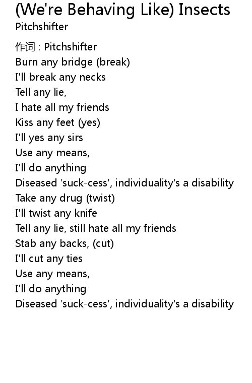 | Song | (We're Behaving Like) Insects |
