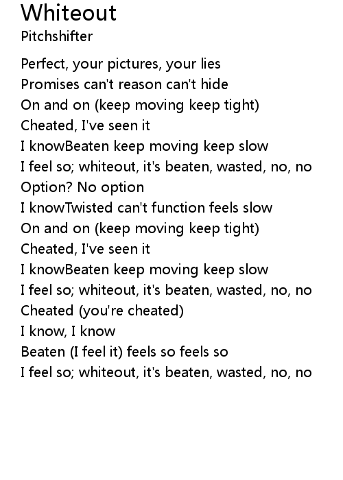 I feel so; whiteout, it's beaten, wasted, no, no |
