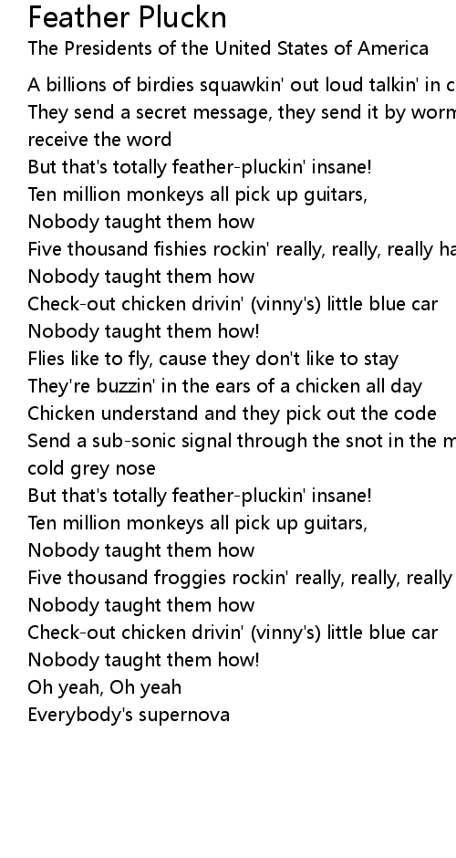 They're buzzin' in the ears of a chicken all day |
