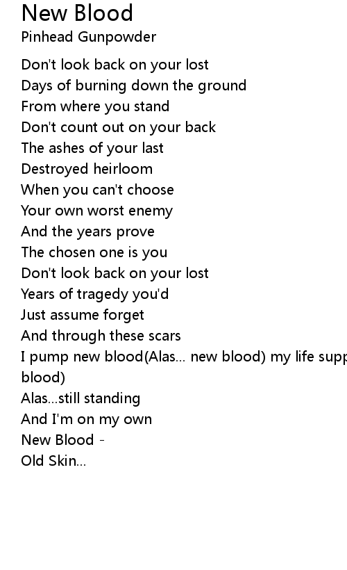 | I pump new blood(Alas... new blood) my life support systems are gone(Alas... new blood) | |