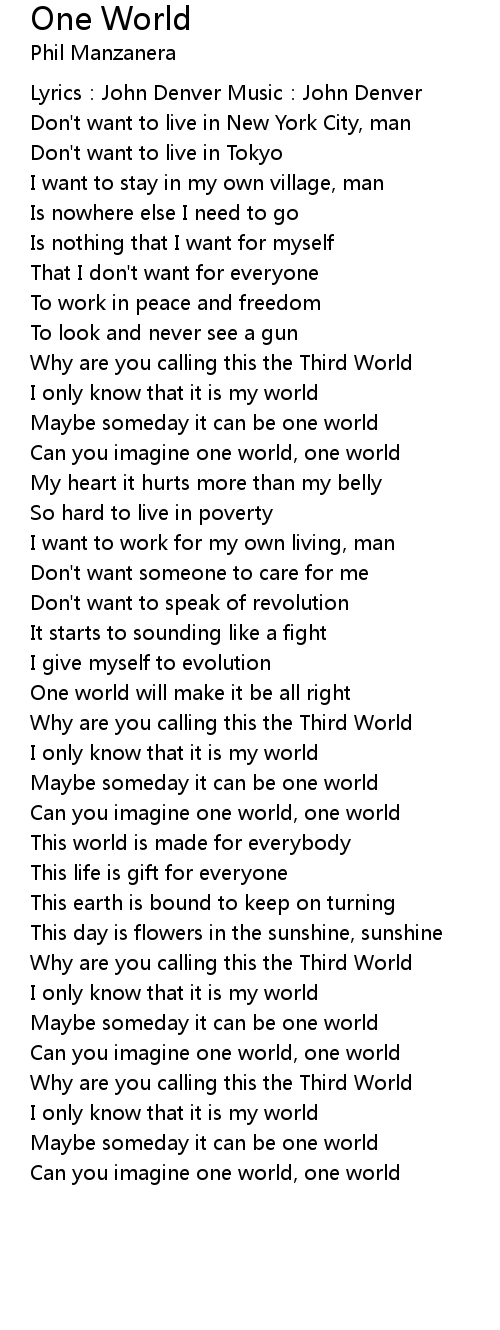 | Can you imagine one world, one world | |